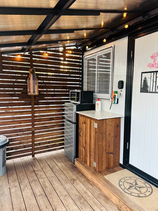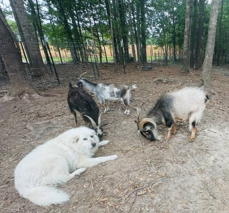 Please note that this is a tiny space, perfect for up to two guests. It offers a camping-like experience, without the need to pitch a tent, while still providing the luxury of modern essentials. It’s ideal for an overnight getaway or a few nights away, though long-term stays are more than welcome. Keep in mind, due to the size and the camping-style setup, the space doesn’t include additional amenities like a coffee maker or toaster, as it focuses on simplicity and nature. The property does have a few goats and a Great Pyrenees named Loki that protects the goats but they are in their own gated area. Loki will bark when you arrive but he is just welcoming you. If he becomes to unwelcoming please let us know.