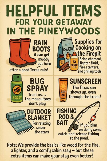 Welcome to your retreat at our charming Highlife Haven property — one of three delightful Airbnbs that we offer where tranquility meets rustic charm. Nestled in the peaceful Pineywoods of Kountze, Texas, Highlife Haven is your cozy getaway designed for relaxation, romance, and reconnecting with nature. Enjoy your own private hot tub and outdoor shower, perfect for unwinding after a day of exploring. Sip your favorite drink on the spacious porch or gather around your private fire pit for an evening under a blanket of stars. Inside, you’ll find warm touches and thoughtful details — including a cozy loft space that’s perfect for kids or adults who want a fun little nook to relax, play games, or enjoy some downtime. It’s a charming feature that adds to the home’s playful and welcoming atmosphere. Our scenic pond and dock offer a peaceful setting for catch-and-release fishing (just bring your own equipment!). While the paddle boats are currently unavailable due to low water levels, the drier weather has made our natural walking trail accessible for those who enjoy a quiet stroll through the woods. You may spot a few friendly animals in their own gated area during your stay! 🐐 If you’d like to feed or visit them, please reach out to us first so we can assist you. For everyone’s safety (and theirs), we kindly ask that you do not go near the gated area or approach the animals on your own. Though there are two additional Airbnb units on the property, each maintains its own privacy, allowing you to fully unwind and enjoy your stay. Experience the perfect blend of modern comfort and natural beauty — where cozy charm meets the great outdoors. Whether you’re seeking a peaceful getaway, a romantic escape, or a fun-filled weekend surrounded by nature, Highlife Haven is your perfect destination. We look forward to having you and would be delighted to host your stay!